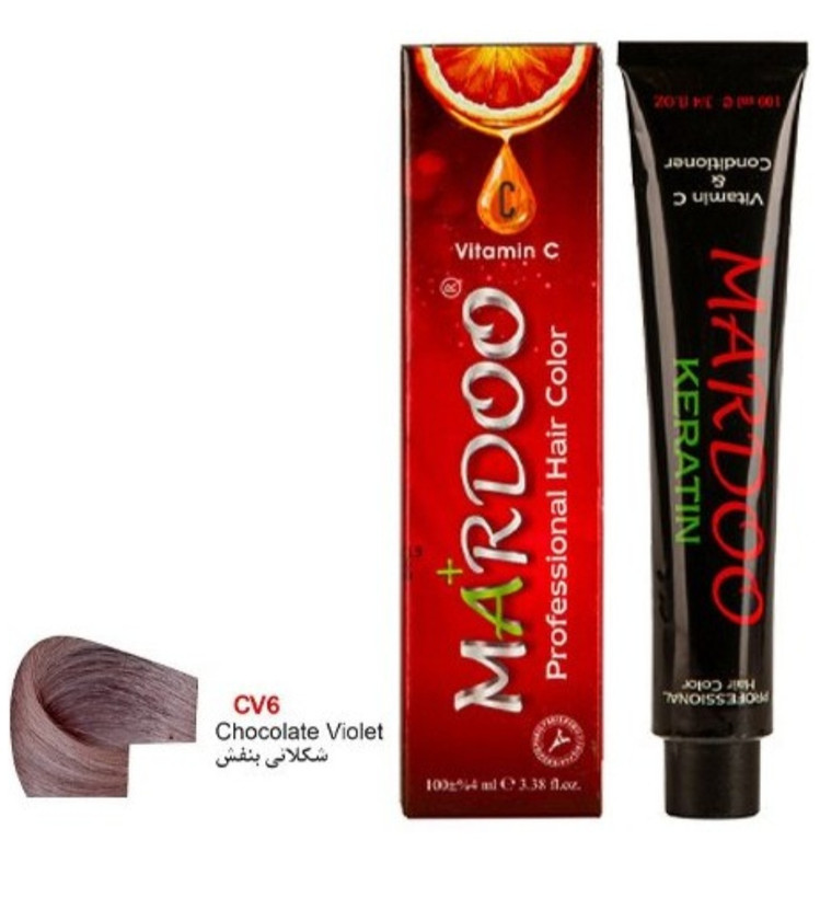 رنگ موی شکلاتی بنفش CV6 ماردو mardoo یکی از محصولات برند خوشنام و معتبر ایرانی ماردو می باشد که حاوی ویتامین های مختلف در ساختار خود بوده و به سلامت پوست به شدت کمک می کند. بدون شک یکی از جذابیت های ظاهری هر فرد، زیبایی رنگ موی آن می باشد و به همین دلیل میل به رنگ کردن موها هر روز در بین افراد مختلف جهان به خصوص خانم ها در حال افزایش است. زیبایی و سلامت موها و پوست سر باعث شده تا افراد در انتخاب رنگ موی مناسب و با کیفیت، حساسیت بالایی به خرج دهند. در صورتی که قصد دارید یک رنگ موی خوب و با کیفیت بالا را خریداری کنید ما به شما رنگ ماردو mardoo را پیشنهاد می دهیم. این رنگ مو به دلیل ویژگی های خاصی که دارد توسط بسیاری از آرایشگران حرفه ای استفاده می شود. رنگ موی ماردو حاوی 7 نوع روغن متنوع و ویتامین های مختلفی بوده که به آسانی توسط پوست سر جذب شده وباعث می شود تا مو حتی تا چند روز بعد از رنگ کردن نیز درخشندگی خود را به همراه سلامت حفظ کند. رنگ موی ماردو به دلیل داشتن ویتامین ها و روغن هایی که دارد از سفیدی و موخوره شدن موها پیشگیری می کند و به سلامت مو کمک می کند