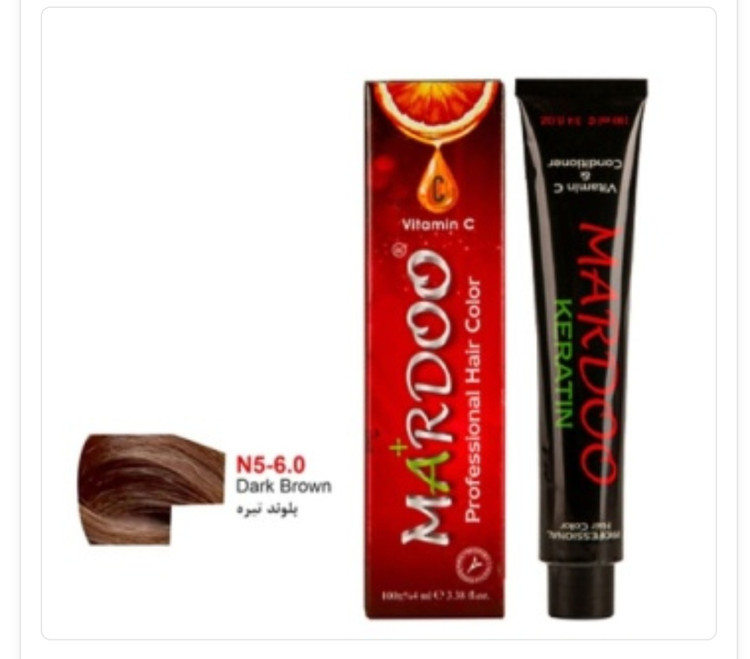 رنگ موی بلوند تیره شماره N5-6.0 ماردو mardoo یکی از محصولات برند خوشنام و معتبر ایرانی ماردو می باشد که حاوی ویتامین های مختلف در ساختار خود بوده و به سلامت پوست به شدت کمک می کند. بدون شک یکی از جذابیت های ظاهری هر فرد، زیبایی رنگ موی آن می باشد و به همین دلیل میل به رنگ کردن موها هر روز در بین افراد مختلف جهان به خصوص خانم ها در حال افزایش است. زیبایی و سلامت موها و پوست سر باعث شده تا افراد در انتخاب رنگ موی مناسب و با کیفیت، حساسیت بالایی به خرج دهند. در صورتی که قصد دارید یک رنگ موی خوب و با کیفیت بالا را خریداری کنید ما به شما رنگ ماردو mardoo را پیشنهاد می دهیم. این رنگ مو به دلیل ویژگی های خاصی که دارد توسط بسیاری از آرایشگران حرفه ای استفاده می شود. رنگ موی ماردو حاوی 7 نوع روغن متنوع و ویتامین های مختلفی بوده که به آسانی توسط پوست سر جذب شده وباعث می شود تا مو حتی تا چند روز بعد از رنگ کردن نیز درخشندگی خود را به همراه سلامت حفظ کند. رنگ موی ماردو به دلیل داشتن ویتامین ها و روغن هایی که دارد از سفیدی و موخوره شدن موها پیشگیری می کند و به سلامت مو کمک می کند