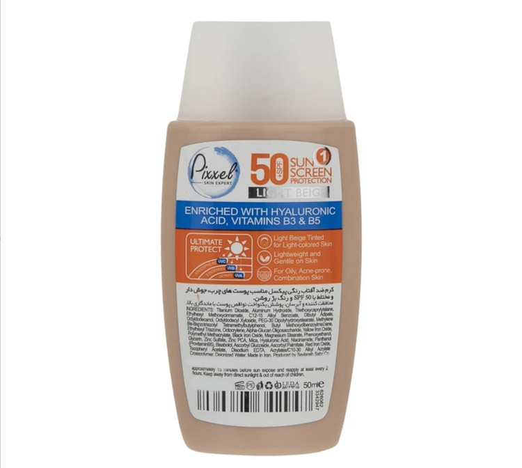 ضد آفتاب رنگی پیکسل پوست چرب، جوشدار و مختلط Spf50 حجم 50 میل