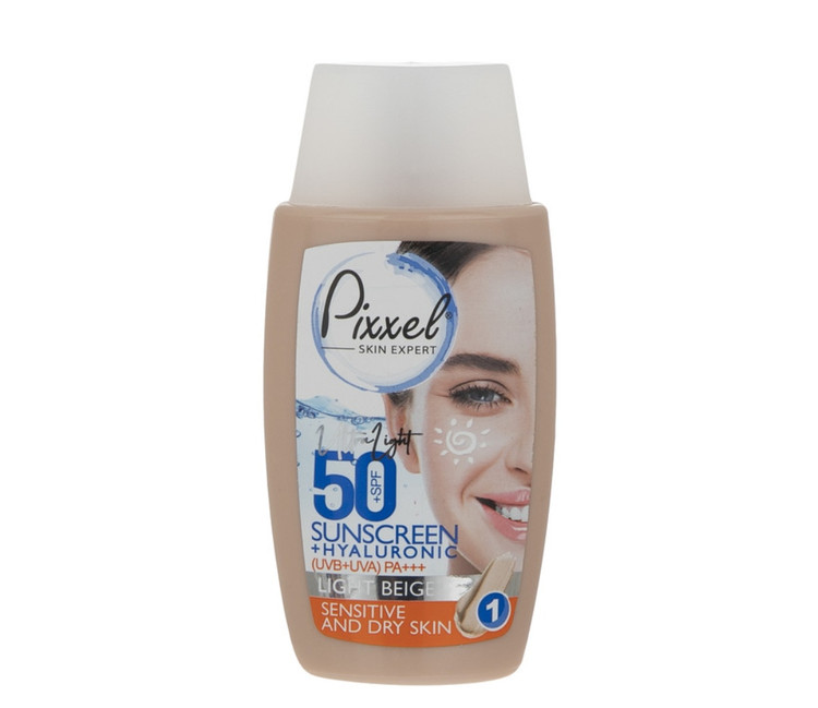 کرم ضد آفتاب رنگی پیکسل SPF +50 مناسب پوست خشک تا نرمال و حساس محصولی با محافظت طیف گسترده است؛ این محصول با دارا بودن فاکتور محافظتی SPF +50 پوست را در برابر آفتاب سوختگی و تورم مقاوم کرده و فاکتور محافظتی +++ PA سبب کاهش تولید ملانین و تیره شدن پوست و همچنین بروز کک و مک میشود. این محصول پیکسل دارای سه رنگ بژ روشن، بژ طبیعی و بژ طلایی است که به ترتیب روشن تا تیره بیان شده اند و برای انواع تناژهای رنگی پوست مناسب اند. این محصول منافذ پوست را مسدود نمیکند و خواص آبرسانی بسیاری دارد و ازین رو یک کرم ضد آفتاب مناسب پوست خشک است.